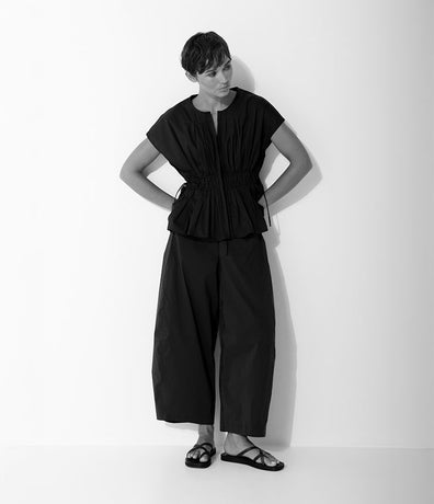 Stretch Cotton Balloon Leg Elastic Waist Pant Palermo Black